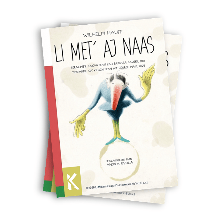 Mock-up of two superposed books with the title K'EQCHI' on the one above